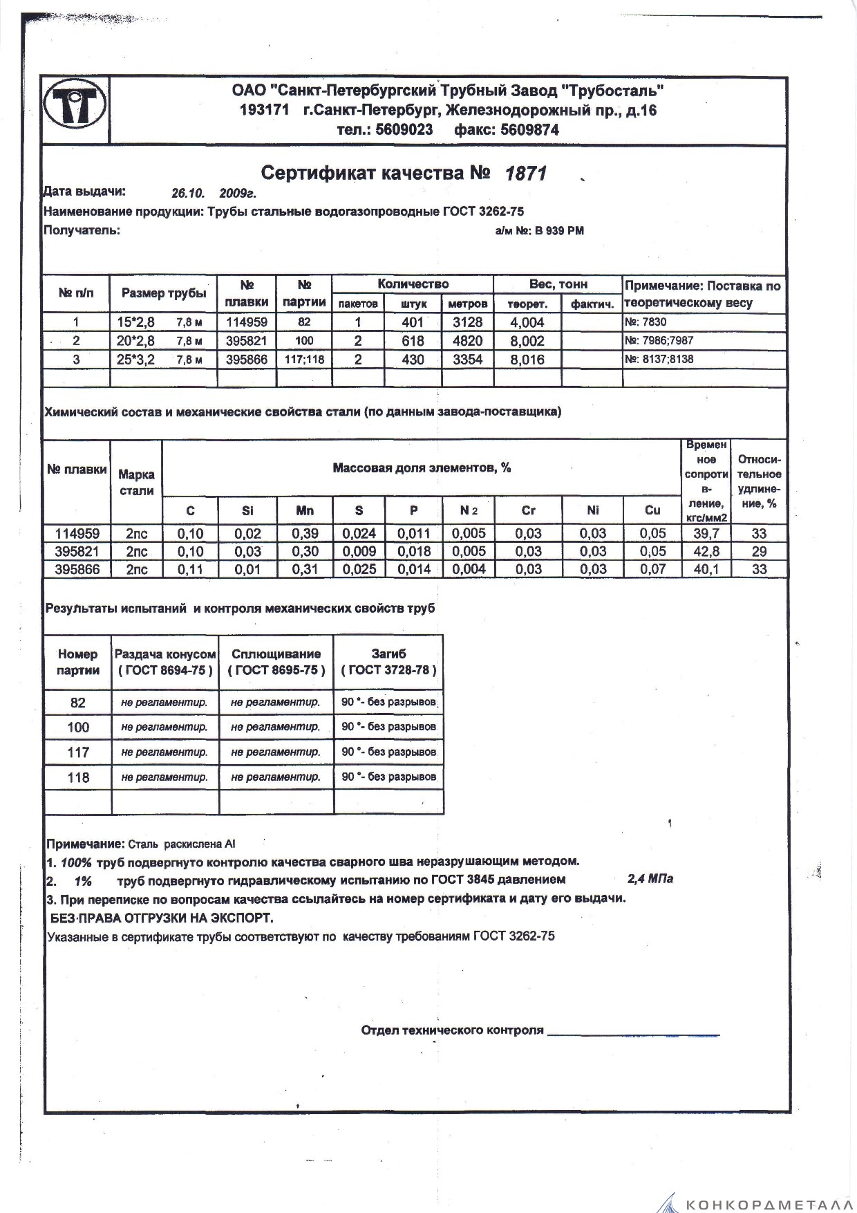 С каждой товарной позицией мы предоставляем все сертификаты и паспорта качества, а также товарно-транспортную накладную.
