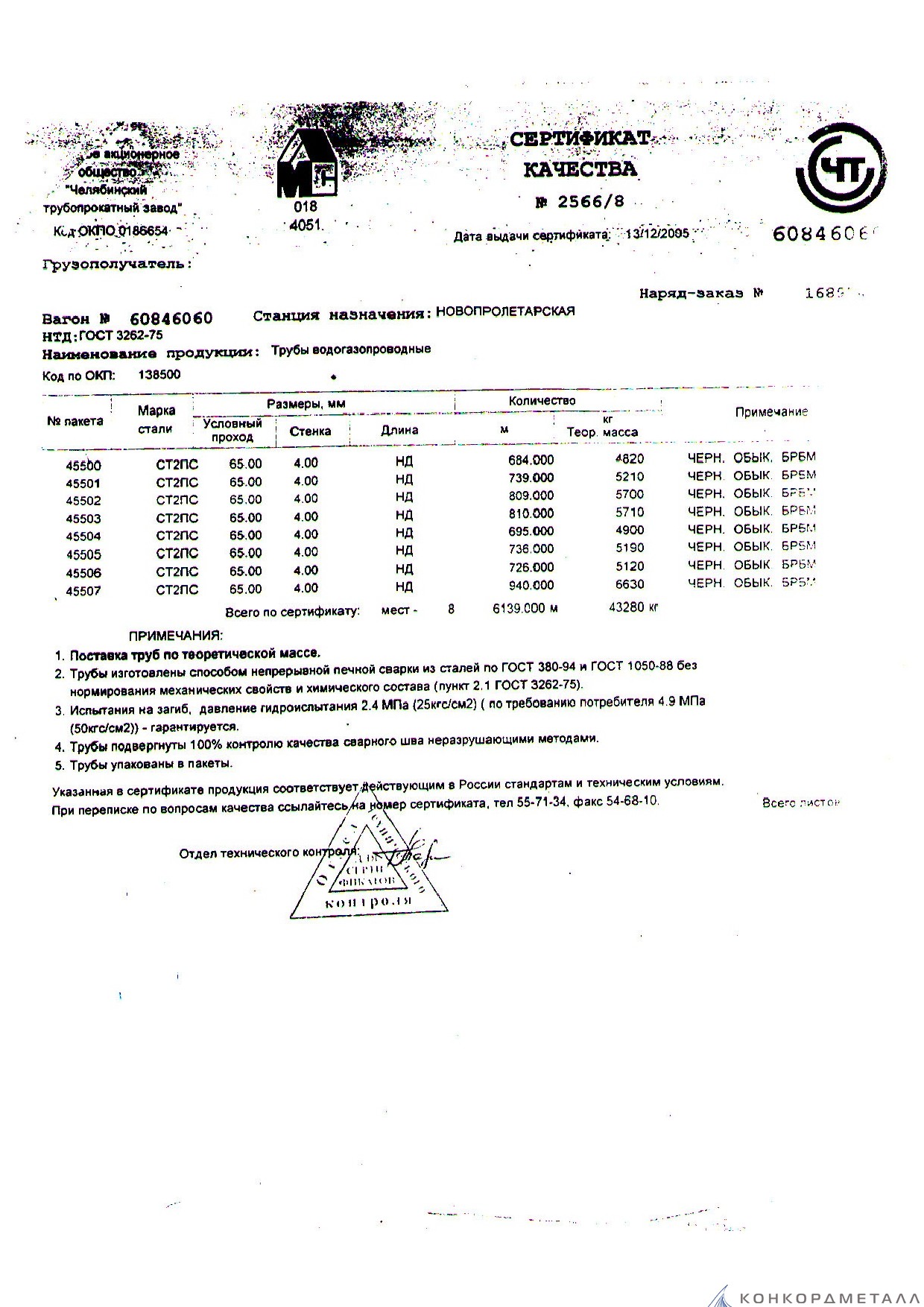 С каждой товарной позицией мы предоставляем все сертификаты и паспорта качества, а также товарно-транспортную накладную.